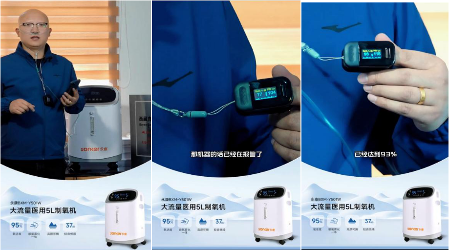 測試開始前,李總使用便攜式血氧儀記錄下基礎(chǔ)血氧飽和度,數(shù)值極低,反映了高原環(huán)境對人體的影響。隨后,他佩戴好鼻氧管,啟動永康制氧機,開始實時吸氧檢測實驗。整個過程被全程錄像,確保測試的真實性和透明度。令人振奮的是,短短一分鐘后,他的血氧飽和度有了顯著提升。這一立竿見影的效果,直觀展現(xiàn)了永康制氧機和多功能車載制氧機在提供高效氧氣補充方面的卓越性能。